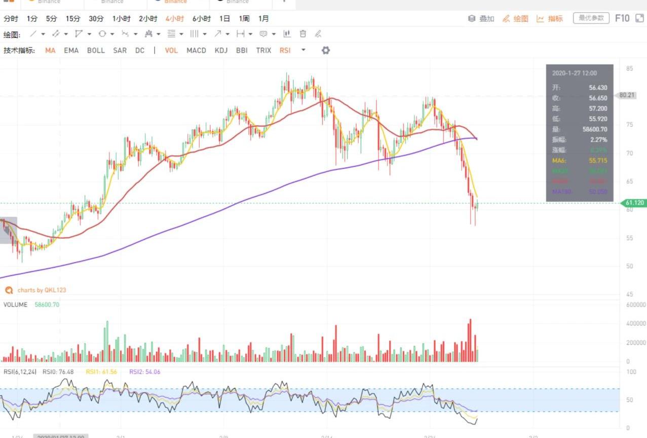 昨日至今BTC連破支撐位,市場恐慌情緒繼續增加,走勢不容樂觀,或將在此位置附近反復試探支撐。短時,RSI指標顯示超賣嚴重,四小時K線出現錘子形態,市場大概率會有所反彈。