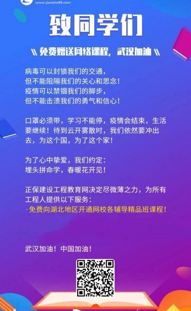 XRP/HKD-1.58%近日,新型冠狀病肺炎的疫情給我們帶來了嚴峻的考驗,全國各方都在通力合作、共同戰“疫”。在這個特殊時期,正保遠程教育向湖北地區免費開放多類線上課程,同全國人民一起共克時艱!