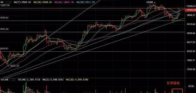 此次跌落至9600美金低點,以及沖擊10200美金回落,是對近期支撐和壓力區間的確認。如果大盤反彈強勢,充足量能配合下,今天就應該能站穩此區間,但不建議追漲,10500美金會是拉伸過后的下一個支撐點,回調此點位附近可以適量加倉。