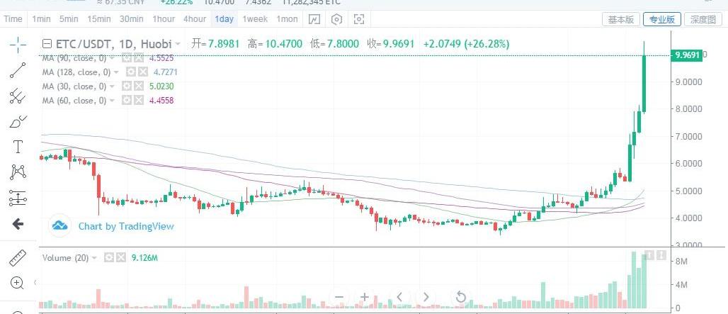 ETC我已經持續喊了好幾天,今天突破10美元,看看ETC能企穩在哪個位置,3月份即將減產20%,還有多少行情等著我們,也許這個春節沒有那么難,難的是不知道怎么操作,有沒有耐心看盤,做分析,我不知道有多少朋友跟上,畢竟我的影響范圍是有限的,減半行情輪番波動,下個預計會是BCH。