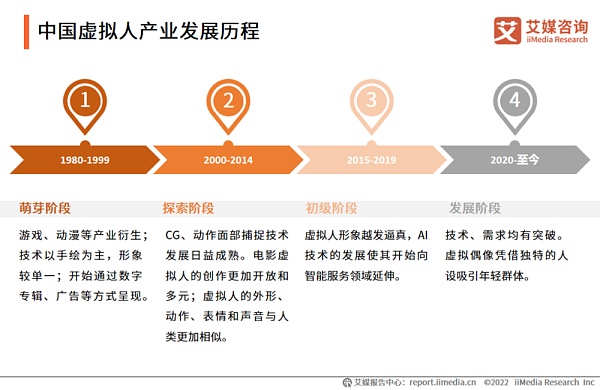 中國虛擬人產業發展歷程/圖片:艾媒咨詢