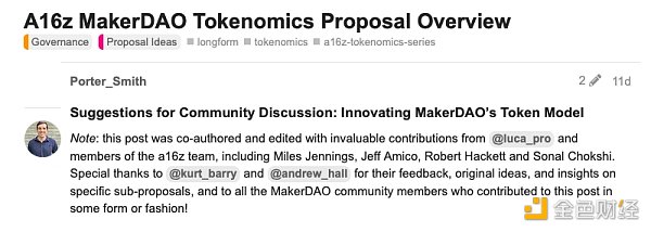 而從 MakerDAO(DAI)的方面來說,再傲居孤峰數年之后,競爭者的崛起顯然也給該協議帶來了一定的危機感。過去一個月里,MakerDAO 社區數次提及希望改變其代幣經濟模型,以整頓包袱,重煥活力。在最近的一次提案中,a16z 甚至還親自下場操刀做了設計……好吧,a16z 的名字都出來了,DAI 背后的力量同樣不容小覷。