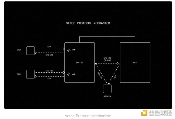 Verse協議使每個數字化物品都有一個嵌入式的、自主的交易所。從結構上看,這意味著通過Verse創建的每一個ERC-721 NFT背后都有一個基本的ERC-20市場支持。下面我們來具體分析一下它是如何工作的。