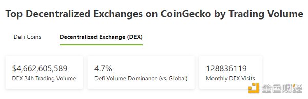 2.過去24小時去中心化交易所的交易量:46.62億美元