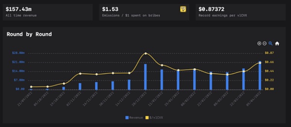Votim Protocol為 vlCVX 的賄賂機制搭建了一個高效的治理權流動性平臺,vlCVX 的持有者在每個提案上出借自己的投票權,從而獲得有意積累投票權的買家提供的賄賂資金。買方能夠直接設定為用戶對指定池子投票而支付的獎勵資金。vlCVX 持有者可以依據不同買方提供的「賄賂」從而進行投票,或者也可以直接早 Votium 平臺上委托 vlCVX,Votium 平臺的智能合約會自動選擇回報最高的「賄賂」行使投票權,這樣 vlCVX 的委托者就不斷的從 Votium 平臺上獲得最大化的賄賂收益,并且到當前為止,Votium 也為 vlCVX 的持有者創造了 1.57 億美元的賄賂收益,非常高效的釋放了治理權對應的市場價值,甚至可以說為治理權創造了之前不曾存在的市場流動性。