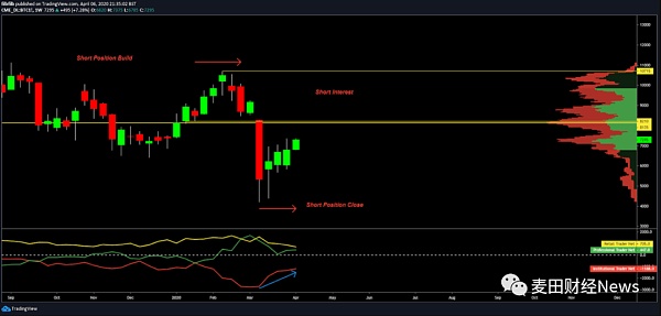 整體而言,目前的價格走勢可以明顯看出,賣家的興趣不大,所以多頭幾乎完全掌控著局面。而且,芝加哥商品交易所(CME)在4月3日發布比特幣期貨報告也顯示,機構交易者再次減少了市場上的凈空頭頭寸。