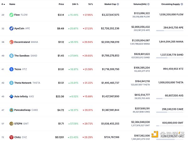 NFT總市值、市值排名前十項目 數據來源:Coinmarketcap