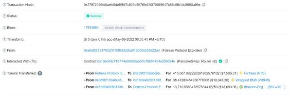 XRP/HKD-3.58%北京時間 2022 年 5 月 9 日,知道創宇區塊鏈安全實驗室監測到 BSC 鏈上借貸協議 Fortress Protocol 因預言機問題被攻擊,這是最近實驗室檢測到的第三起預言機攻擊事件,損失包括 1,048 枚 ETH 和 400,000 枚 DAI,共計約300W 美元,目前已使用 AnySwap 和 Celer 跨鏈到以太坊利用 Tornado 進行混幣。