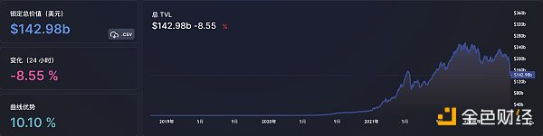 5月10日消息,據歐科云鏈鏈上大師數據顯示,全網Defi總鎖倉量已連續6日呈現下降趨勢,截至目前總鎖倉量超1408億美元,較2022年鎖倉量最高點(1月19日的2194億美元),跌幅超35%。 目前Defi項目中鎖倉量排名前三的分別是Lido(178億美元)、Curve(152.1億美元)、Maker(115億美元)。