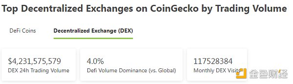 2.過去24小時去中心化交易所的交易量:42.31億美元