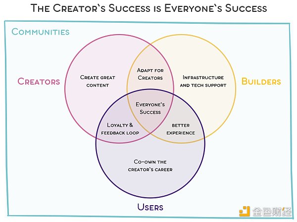 總而言之,在這個 Web3 的新范式中,我們看到了一種相對更加平衡的關系,其中每個參與的人都可以為創作者的作品增加一些價值。通過在建設者(平臺)、創作者和用戶之間的合作基礎上形成一個聯盟,創作者擁有了一個可以分享內容的社區,社區也會長期陪伴他/她職業生涯的成長。