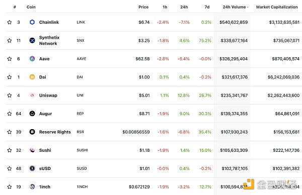 過去24小時去中心化交易所的交易量 數據來源:coingecko