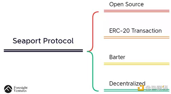 ? 首先,可以看到市場已經有這方面的趨勢,OpenSea 官方于 2022 年 5 月推出的去中心化協議 Seaport Protocol,想要將 NFT 交易市場變得更加去中心化,其主要特點如下圖所示: