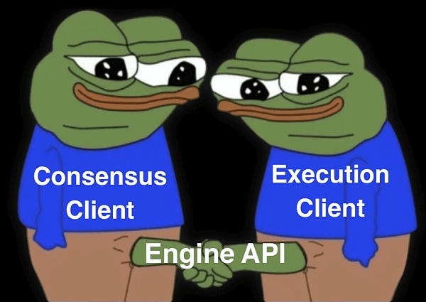 執行客戶端(又名 "Eth 1.0 客戶端"):當前的 Eth 1.0 客戶端繼續處理執行。他們處理區塊,維護內存池,管理和同步狀態,撕掉 PoW 的基本特質。