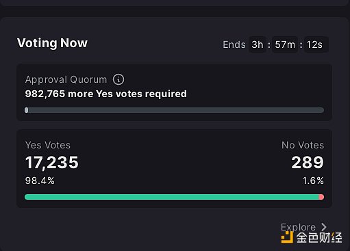 截至發稿,SLN2提案離結束還有3小時57分,目前SLN2提案支持率達到98.4%。