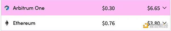 XRP/HKD-5.52%據 L2Fees 網站數據統計,今日 Arbitrum 上交易 GAS 費用短時飆升,目前為 6.65 美元,超過以太坊主網(3.8 美元)。