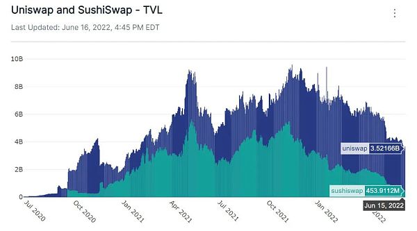 盡管SushiSwap在早期取得了成功,但Uniswap仍然在TVL、交易量和交易者數量方面位居前列。Uniswap以極高的效率推出了更新的產品 (v3) 和新的用戶體驗,而且幾乎沒有什么問題。撇開這些批評不談,治理模式——更像是寡頭而不是真正的民主——已被證明是非常成功的。