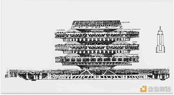 Paolo Soleri 的 Hyperstructures 的地面視圖中的「超結構」