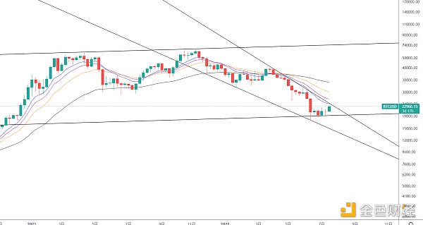 昨日BTC小時級別持續背離,最高反彈至24300附近遇阻回落,位于昨日分析的下降三角壓制線上,前期BTC已有多次受制于該線壓制,同時這一帶也是60日均線、本輪頂底0.236回撤位和周均線壓制區域24200-24500,近期反彈首次觸碰回落屬于正常走勢,后面就要關注再次嘗試能否有效突破,如圖目前整體仍是三角末端整理,昨日分析也提到了這種形態后面一般向上突破概率大,只是變盤前醞釀時間長短區別,短線在未突破前依舊可以逢高減倉,有效突破在跟進,那么后續就將有望試探中軌26500一帶壓力,目前看時間還早。