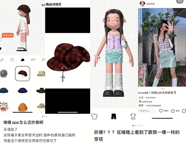 而啫喱最大的賣點——富有個性的元宇宙虛擬穿搭,也被曝出涉嫌抄襲。