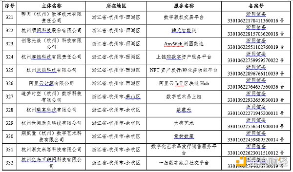 XRP/HKD-3.31%根據《區塊鏈信息服務管理規定》,國家互聯網信息辦公室7月25日發布第九批共348個境內區塊鏈信息服務名稱及備案編號,其中包括北京網易傳媒有限公司的網易新聞數字藏品館、遠光軟件股份有限公司的鏈上鏈下數據交換平臺以及中國銀聯股份有限公司的數字藏品應用服務平臺等。