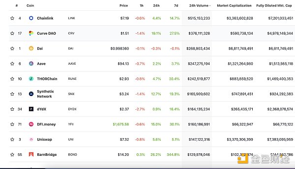 過去24小時去中心化交易所的交易量 數據來源:coingecko