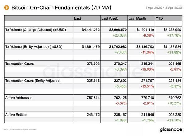 在報告中,Glassnode 指出,上周經過調整后的交易量增長了23%以上。