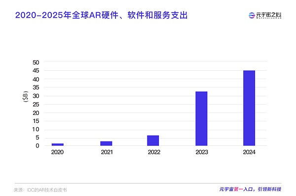 同時,IDC還預測,AR市場支出則將在今年達到59億美元,在2025年達到456億美元。