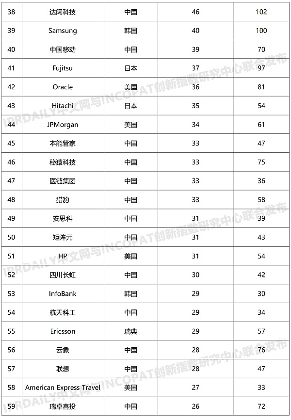 XRP/HKD-2.7%4月24日,知識產權產業媒體IPRdaily發布“2019年全球區塊鏈發明專利排行榜(TOP100)”。這份榜單通過對2019年全年公開的全球區塊鏈技術發明專利申請數量進行統計排名,榜單顯示入榜前100名企業主要來自9個國家和地區,中國占比60%,其次為美國占比 22%,日本占比 6%,韓國和德國分別占比 5% 和 3%,芬蘭、安提瓜和巴布達、愛爾蘭和瑞典各占比 1%。