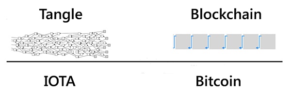 Figure6: Tangle分布式架構與傳統區塊鏈的區別