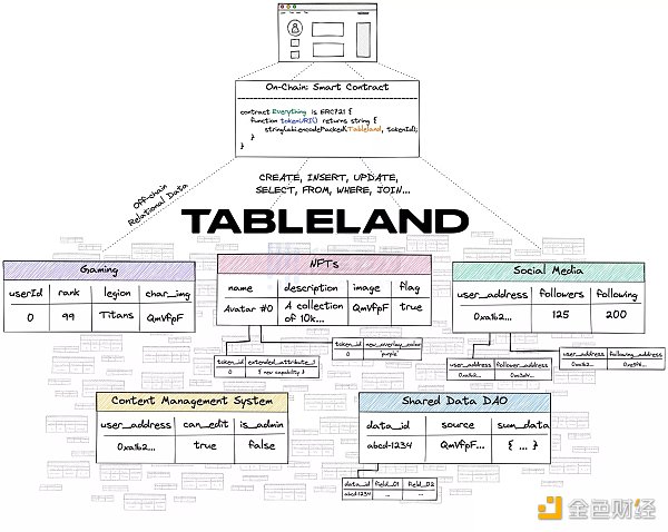 Tableland 是一種用于結構化數據的分散式 Web3 協議,通過 Tableland 能以去中心化的方式來實現傳統的 Web2 關系數據庫功能——訪問控制以改變元數據、熟悉的 SQL 式元數據查詢與數據表組合拓展。
