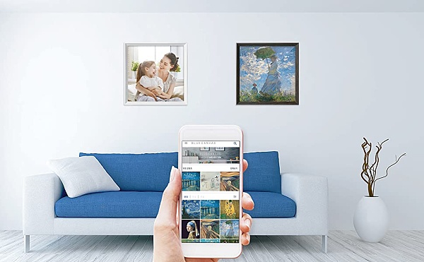 更進一步的方案是電子相框,這種方法更具現代感,Blue Canvas 等智能電子相框可以支持動圖。但是所有權和互動的問題仍然無法解決。