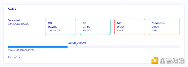 七、此前,社區提出 Prop 1188 提案,試圖「銷毀社區池中剩余的 UST + 跨鏈流動性激勵 UST」,從而使普通 UST 持有者獲得更多空投。該題案雖然最終通過,但由于參數設置導致技術故障沒有成功執行,而后社區再次修改提出 Prop 1747。目前該提案正在投票,但沒有達到 50% 的通過門檻,距離投票結束還剩下一天時間,目前尚不清楚其能否在 27 日快照前成功部署實施。