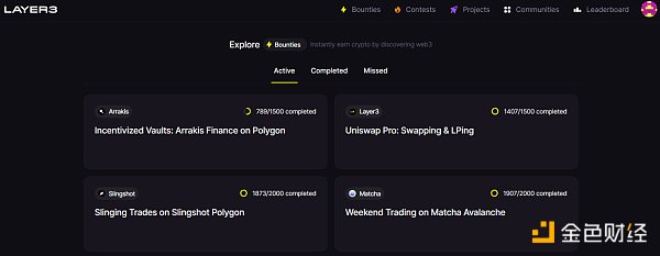 Bounties:該系列的難度系數最低,主要是DAO發布的了解產品的激勵活動,任何用戶都可以參與,完成相應任務并經過Layer3平臺審核通過后,即可以獲得相應的獎勵(如項目代幣、XP等),當賞金全部被分發完后,該活動結束。