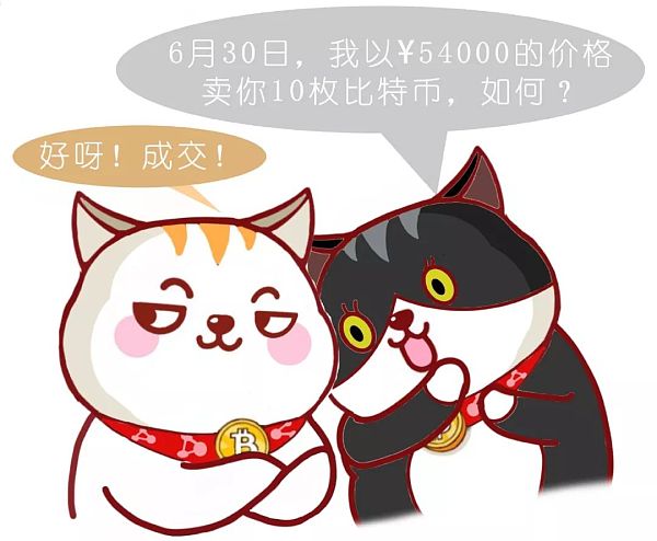 舉個例子,假設張三是一名比特幣礦工,每個月能挖出10枚比特幣。最近比特幣價格迅速飆升,張三雖然很高興,但也擔心未來一個月價格還會跌回去,因為離2020年比特幣挖礦獎勵減半還遠著,猜測牛市不會這么快到來。張三的朋友李四則是樂觀派,認為牛市已經啟動了,未來一個月的價格會更高。于是,張三和李四約定,以現在 ¥54000 的價格,在6月30日將6月份挖出來的10枚比特幣全部賣給李四。