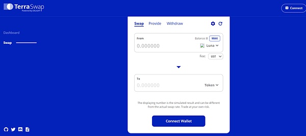 需要注意的是Terraswap自2020年11月上線以來,并未發行任何通證,用戶在進行資產兌換時,需要支付交易額的0.3% 作為手續費。