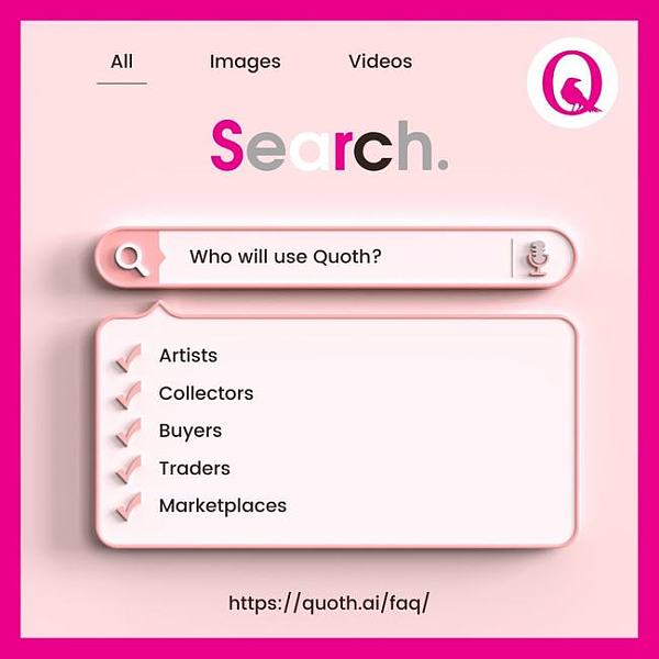 為此,Quoth率先帶來了創新性解決方案。Quoth通過創建自己的AI/ML(人工智能/機器學習)系統,對圖片、音樂和文本等類原創NFT的所有信息進行提取和存儲后,從而實現所有數據有跡可循,精確度高達99.99%。同時,預言機是區塊鏈與真實世界之間的橋梁,Quoth引入了API身份驗證預言機,以及集合機器學習的Google式去中心化搜索查詢功能,讓用戶可在數分鐘內搜尋所有交易市場、錢包等各類經過身份驗證NFT,且還可查看合約地址、相關交易、時間戳、價格變化及發起者等信息。