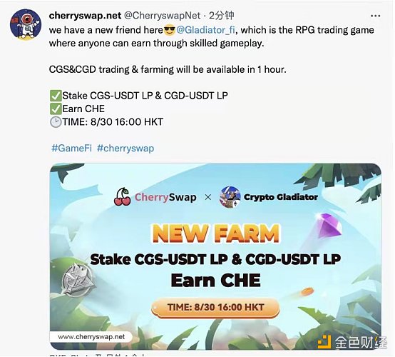 截止到8月30日下午,CGS和CGD已可在CherrySwap上交易,實現價值的相互交換。