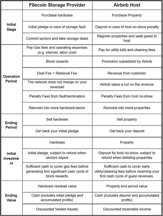 在我們討論Filecoin挖礦經濟的細節之前,我們可以先看一下Filecoin礦工的運作與Airbnb房東的直接比較。