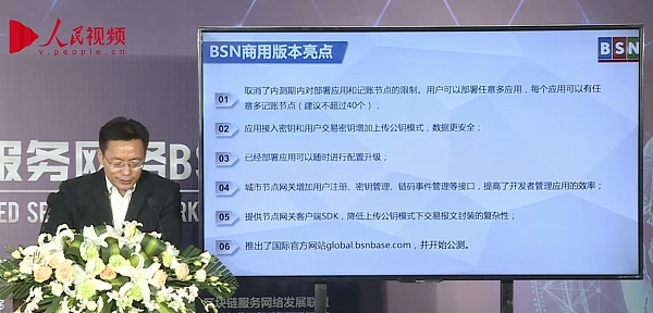 區塊鏈服務網絡BSN發展聯盟理事長單志廣介紹了BSN商用版本的亮點:1.取消內測期內對部署應用和記賬的限制,用戶可以部署任意多應用,每個應用可以有任意多記賬節點;2.應用接入密鑰和用戶交易密鑰增加上傳公鑰模式;3.已經部署應用可以隨時進行配置升級;4.城市節點網關增加用戶注冊、密鑰管理、鏈碼事件管理等接口;5.提供節點網關客戶端SDK;6,推出國際官方網站global.bsnbase.com,并開始公測。