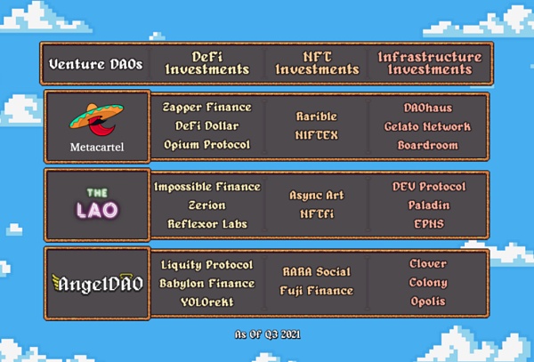 venture DAO 在過去幾年非常活躍,投資了 web3 生態系統中的許多頂級 DeFi、NFT 和基礎設施項目。