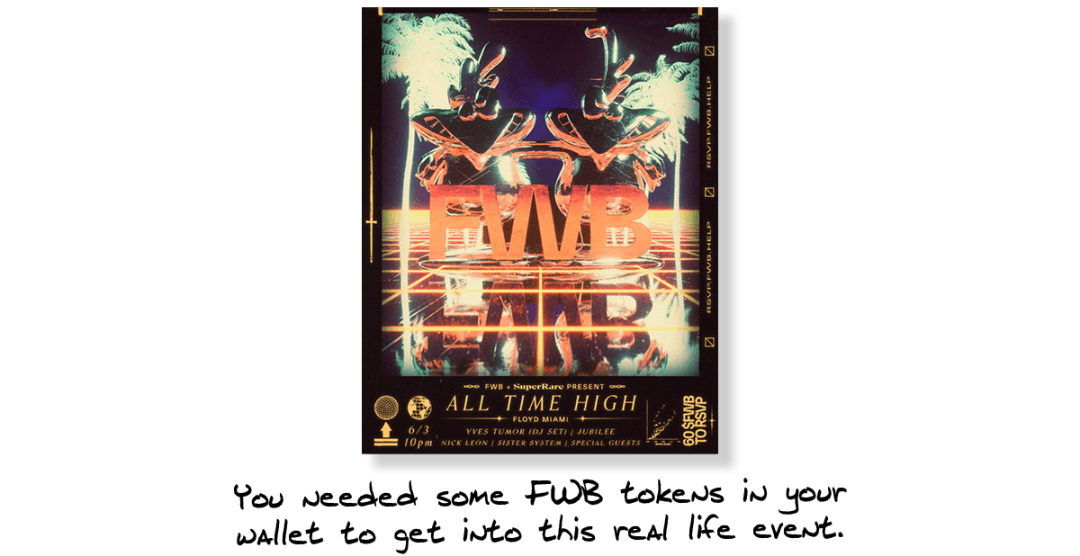 活動是其中的一個重要部分。FWB?于?7?月在巴黎的以太坊社區會議上舉辦了第二次?IRL?派對。這一次,該活動更加堅定地融入了FWB的區塊鏈世界,如果你事先沒有持有貨幣,你可以簡單地購買一些,甚至在俱樂部外進行購買然后向門口的人展示。這些要感謝DAO的成員在一周內創建的新應用程序。(如果您不想加入社區,您可以在活動結束后簡單地將其出售或換回。)
