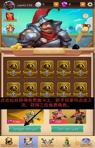 招募營地可以用鉆石去招募角斗士,品質越高,其基礎性與成長性就越好,越有利于后期關卡的通過。