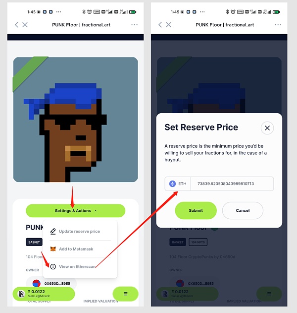 也就是說,當個人或團體存入足夠的 ETH 以達到或超過Valut確定的拍賣底價時,Valut的拍賣收購就啟動了,如果這個收購成功,Valut的所有 NFT 碎片代幣的持有者便可將代幣兌換成 ETH,盈利出局。