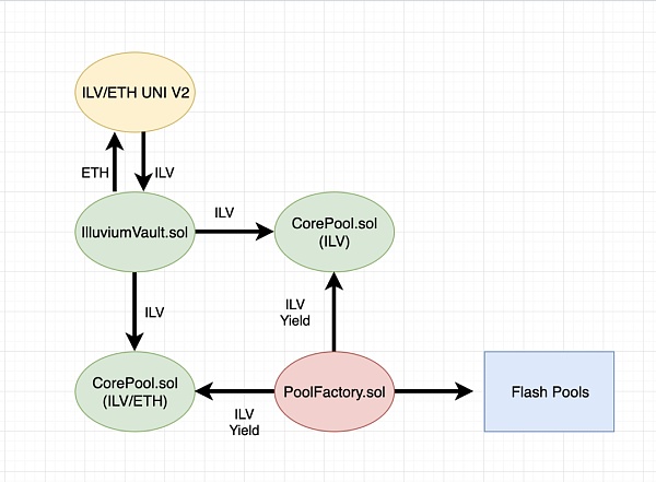 3)金庫資金使用:金庫會定期自動地使用 ETH 從 ILV/ETH 交易對中購買 ILV,并把 ILV 按比例分配給 ILV 質押者。