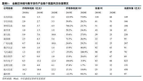 圍繞金融領域區塊鏈產業鏈重點推薦:恒生電子、金財互聯、航天信息、贏時勝;圍繞數字貨幣產業鏈重點推薦:宇信科技、神州信息、長亮科技、新大陸、新國都、廣電運通、新開普、數字認證、飛天誠信、格爾軟件。