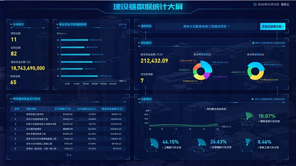 建設資金與支付鏈路統計大屏