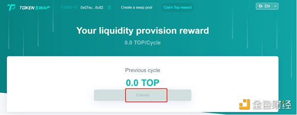 *流動性挖礦獎勵24小時一輪,請在時間內領取獎勵,否則Top代幣會進行銷毀。