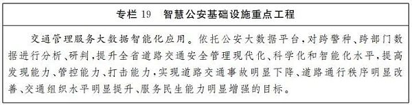 智慧基礎設施建設。深化大數據智能化建設,升級完善省市兩級大數據平臺,實現智能化的情報分析研判、預警預測預防、精準管控打擊、精細管理服務。推進智慧交管建設,強化交通管理大數據應用,通過科學、精準預判安全風險,提升道路安全防控、城市交通治理、交通違法管控、交管服務等能力。完善交管各類平臺系統,織密道路交通感知網絡,構建以智能感知、智能計算、智能認知、智能應用為支撐的智慧交通管理體系。加強技偵平臺系統建設和專用裝備建設,深入研究5G、物聯網、區塊鏈、AI等新技術新應用,有效提升涉網犯罪偵查打擊、電子數據勘查取證和技術對抗等能力。持續推進“雪亮工程”建設,推動公共安全視頻監控建設和聯網應用,提高視頻監控點位覆蓋率和高清率,全面提升社會治安防控水平和城市社會治理現代化能力。