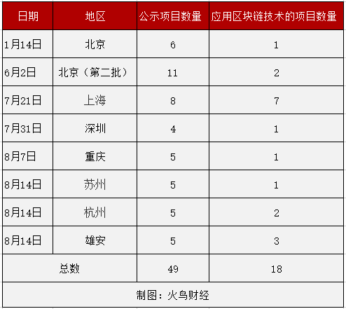 根據公示項目的介紹,火鳥財經整理了各試點項目的區塊鏈使用情況說明。